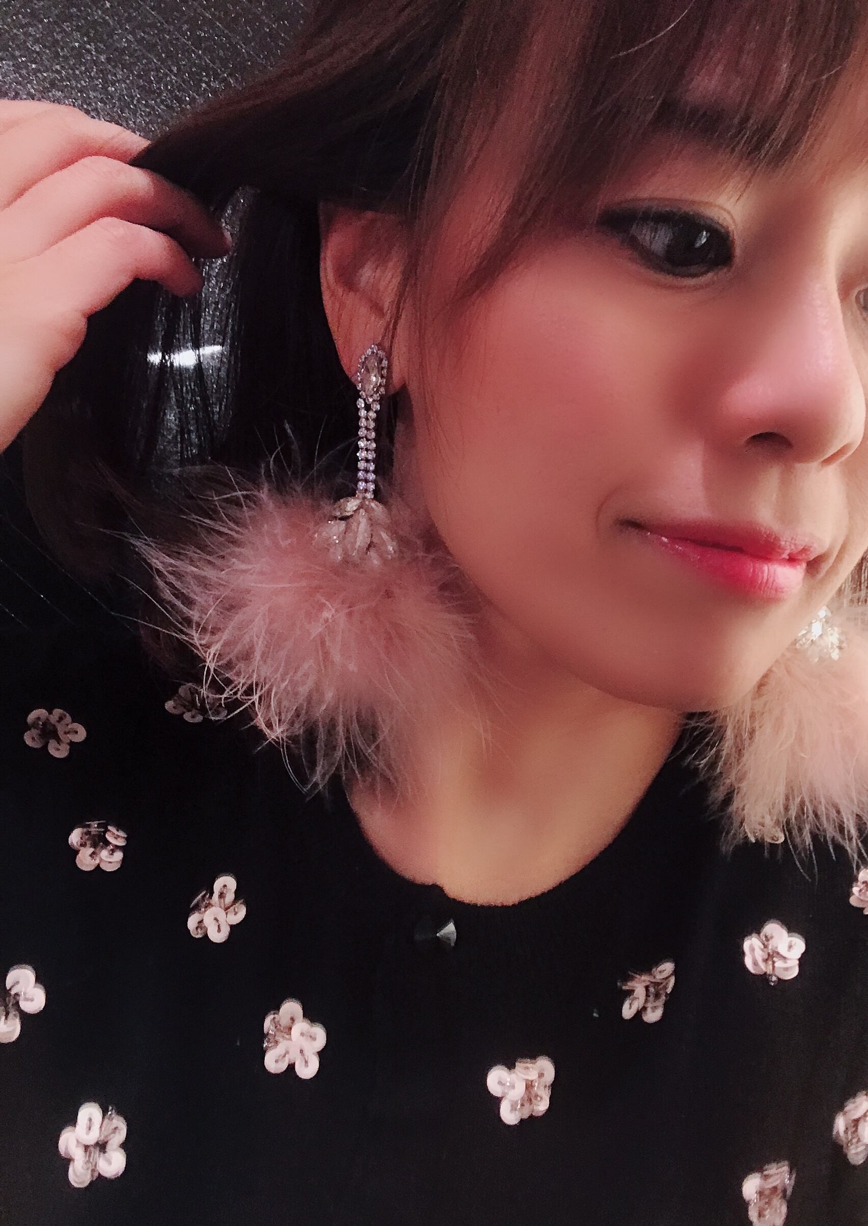 ご紹介するデザインは、クリスタルが散りばめられたファーが可愛いピアスとイヤリングのご紹介です!薄いピンクカラーがふわふわのファーで女らしいデザイン。さらにキラリと光るクリスタルが洗練されています。冬限定のこちらは、ピアス イヤリングともに品薄人気商品です!